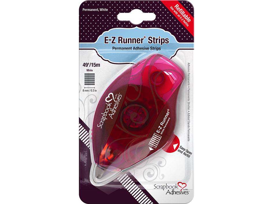 Permanent dobbeltsidig tape med refill. Dispenser med oppkuttede