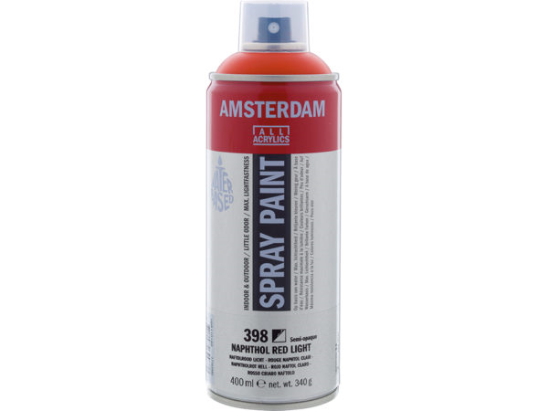 Amsterdam akrylspray gir din kunstneriske frihet nye muligheter. Mal og spray om hverandre og lek med fargene! Fargepaletten på 46 farger inneholder både transparente og dekkende farger, så man kan bruke samme maleteknikker som med tradisjonell kunstnermaling. Fargene har meget god lysekthet og kan derfor brukes til varige arbeider på de fleste underlag. Med denne profesjonelle spraymalingen kan du jobbe raskt og legge til nye teknikker i kunstverkene dine. Amsterdam spray er vannbasert og laget av en ny, revolusjonerende vannformel som gir mindre lukt.