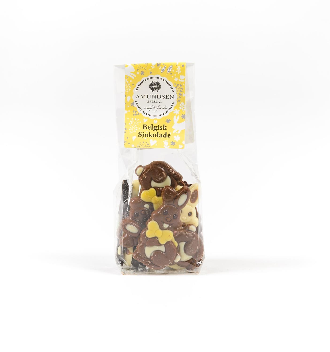 Ingredienser: melkesjokolade (sukker, kakaosmør, kakaomasse, helMELKpulver, skummetMELKpulver, naturlig vaniljesmak emulgator (SOYAlecithin), hvit sjokolade (sukker, kakaosmor, helMELKpulver, skummetMELKpulver, emulgator (SOYAlecithin), naturlig vaniljesmak), mørk sjokolade (kakaomasse, sukker, kakaosmor, emulgator (SOYAlecithin), kakaosmør, fargestoffer (gulrot, spirulina, svart reddik, eple, solbær), rødbet juice pulver. Hvit sjokolade kakao 22,7% minst. Melkesjokolade kakao 28,1% minst. Mørk sjokolade kakao 54,1% minst. Kan inneholde spor av: EGG, GLUTEN, NØTTER