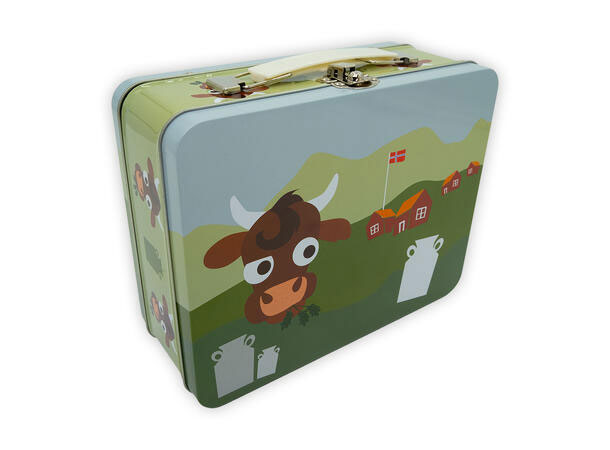 Romslig og dekorativ koffertboks til all slags bruk. Boksen kommer i flere ulike motiver. Godkjent for oppbevaring av tørr mat. Vi anbefaler ekstra emballering, som matpapir eller pose, hvis maten er fuktig. Boksen har lang levetid ved skånsom bruk, vi anbefaler derfor at metallboksene ikke vaskes i oppvaskmaskin eller står fuktig. Vask for hånd og tørk godt.