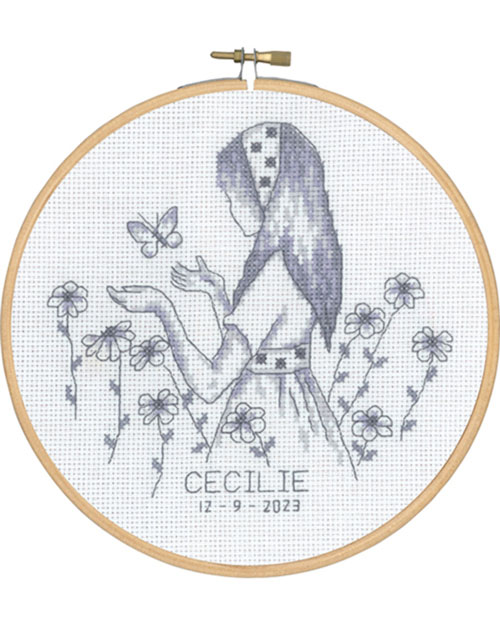 aida, DMC-garn, nål, broderiring og veiledning følger med