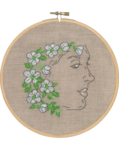 lin, DMC-garn, nål, broderiring og veiledning følger med