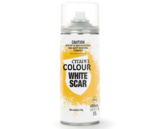 Citadel White Scar Spray er perfekt når du skal baselegge miniatyrene dine. Når den sprayes over en grunning er det en rask måte å få en uniformfarge på modellene.
