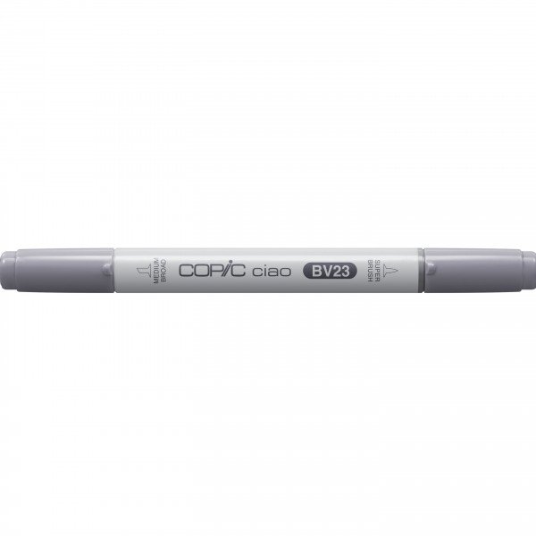 Copic Ciao er tilgjengelig i 180 farger, den er sylinderformet og har pensel (brush)– og cheasel (medium broad) tupp. Alkoholbasert og ikke giftig.