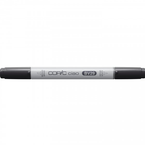 Copic Ciao er tilgjengelig i 180 farger, den er sylinderformet og har pensel (brush)– og cheasel (medium broad) tupp. Alkoholbasert og ikke giftig.