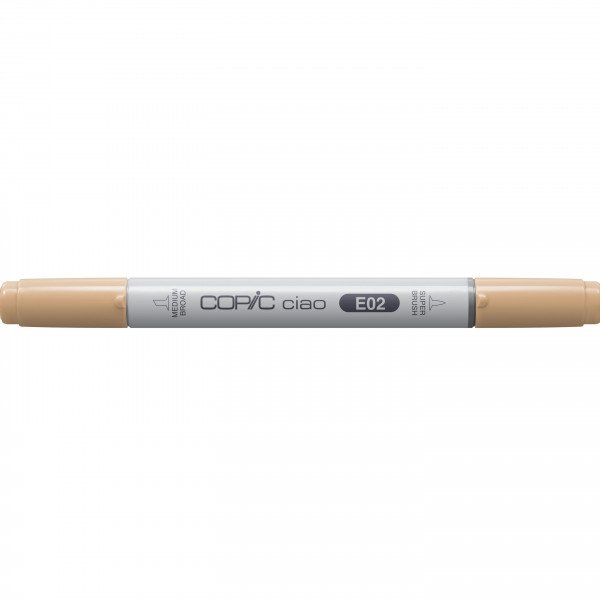 Copic Ciao er tilgjengelig i 180 farger, den er sylinderformet og har pensel (brush)– og cheasel (medium broad) tupp. Alkoholbasert og ikke giftig.