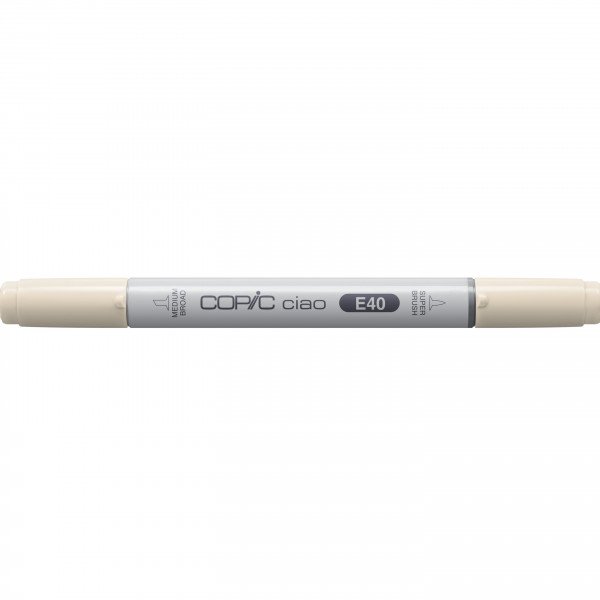 Copic Ciao er tilgjengelig i 180 farger, den er sylinderformet og har pensel (brush)– og cheasel (medium broad) tupp. Alkoholbasert og ikke giftig.