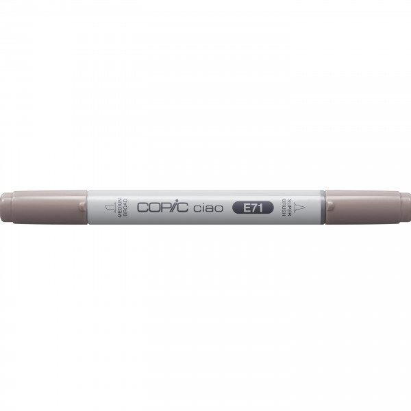 Copic Ciao er tilgjengelig i 180 farger, den er sylinderformet og har pensel (brush)– og cheasel (medium broad) tupp. Alkoholbasert og ikke giftig.