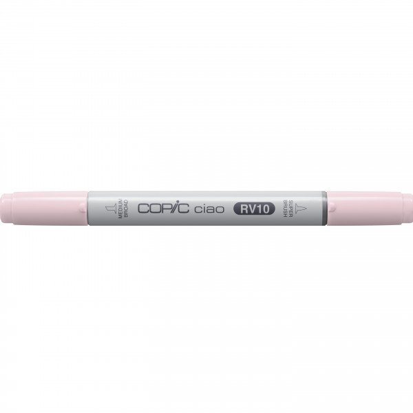 Copic Ciao er tilgjengelig i 180 farger, den er sylinderformet og har pensel (brush)– og cheasel (medium broad) tupp. Alkoholbasert og ikke giftig.