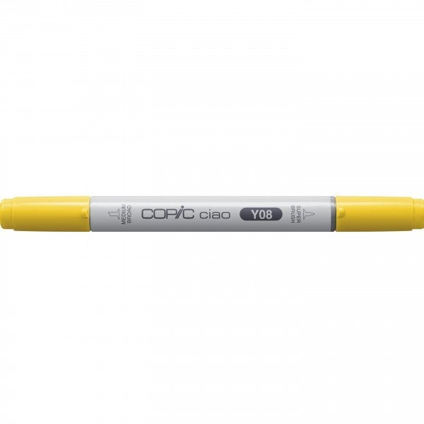Copic Ciao er tilgjengelig i 180 farger, den er sylinderformet og har pensel (brush)– og cheasel (medium broad) tupp. Alkoholbasert og ikke giftig.