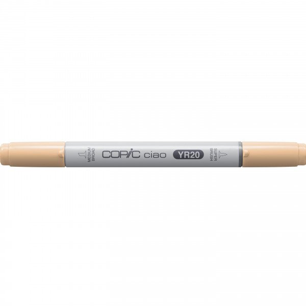 Copic Ciao er tilgjengelig i 180 farger, den er sylinderformet og har pensel (brush)– og cheasel (medium broad) tupp. Alkoholbasert og ikke giftig.