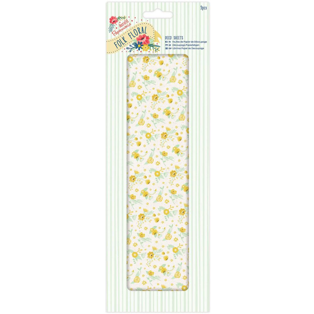 Papermania-Folk Floral Deco Sheets. Dekk og pynt gjenstander for å skape vakre håndverkprosjekter! Brukes til å dekke en rekke overflater, inkludert tre, plast, metall og glass.