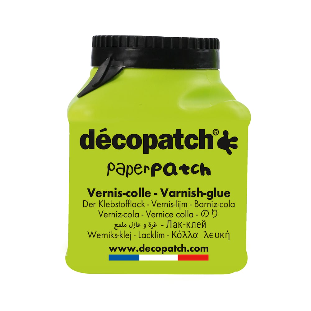 PaperPatch er et vannbasert lim-og-lakk utviklet for Décopatch-papir. Det endrer ikke farger eller mønstre, fester til de fleste underlag og danner en klar, vannfast halvblank overflate etter tørket. Egner seg til papir-mâché, glass, tre, terrakotta, metall og plast.