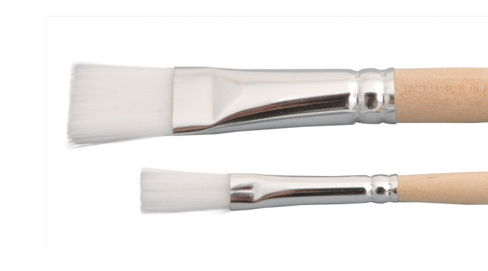 Flat decoupagepensel med ekstra bløt, hvit syntetisk bust. Kort, ulakkert skaft.