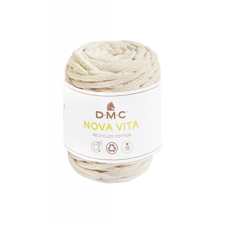 DMC Nova Vita er et garn fremstillet av resirkulert bomull fra tekstilindustrien. Garnet er perfekt til hekling, strikking og macrame. Garnet er Oekotex Certificert.
