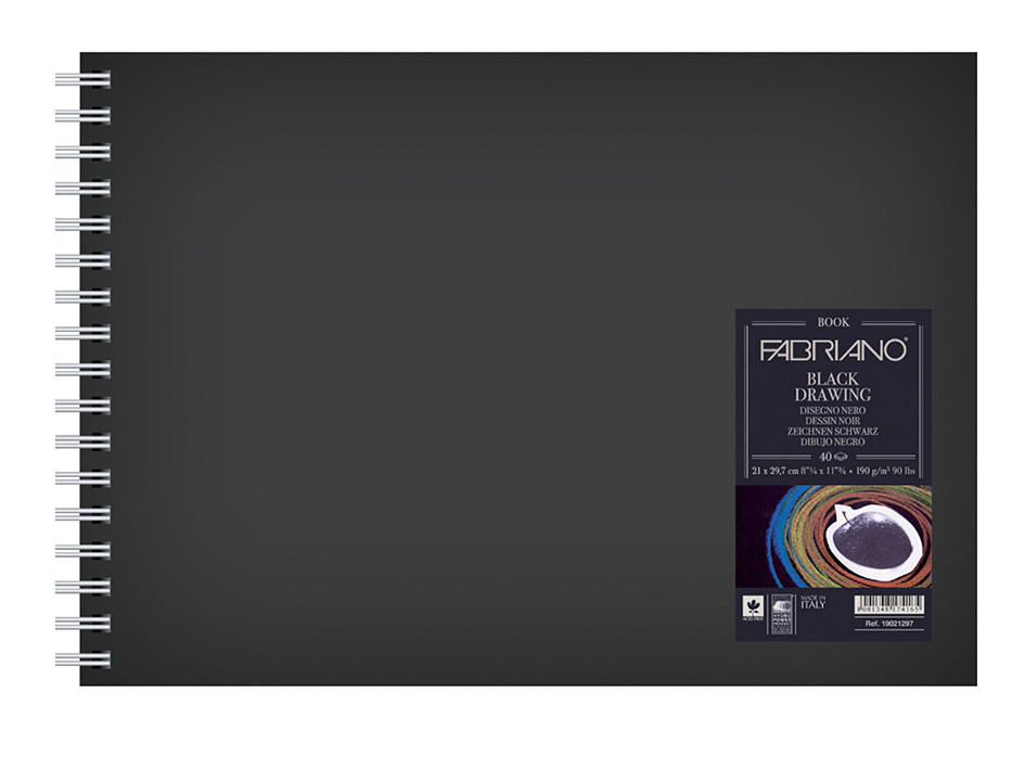 Fabriano Book Spiral Black Drawing 190g A5landskap