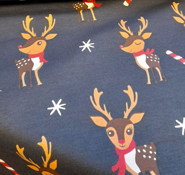 French Terry brushed print – deer navy