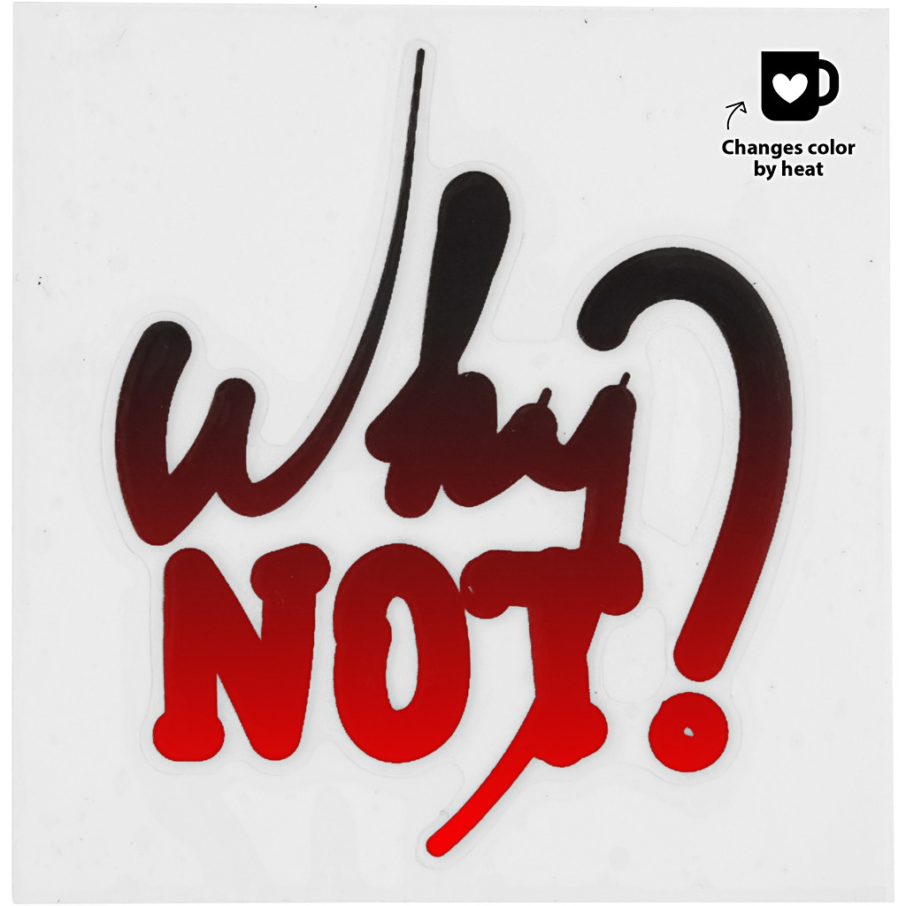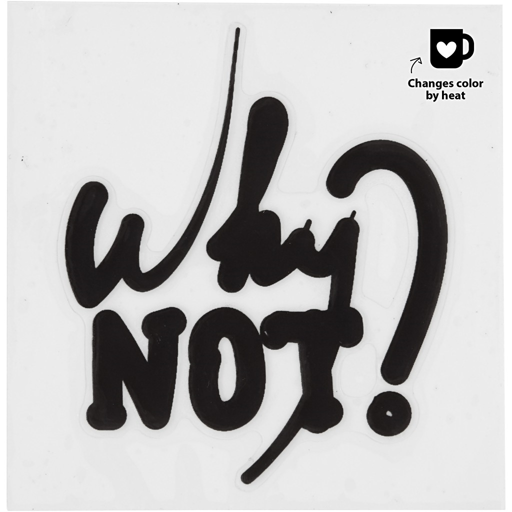 Den transparente beskyttelsesfilmen fjernes og den selvklebende motivet overføres på emnet. Tåler deretter lett hånd-vask. Når emnet varmes opp, f.eks. varm te i en kopp – skifter fargen på stickersen fra svart til rød .