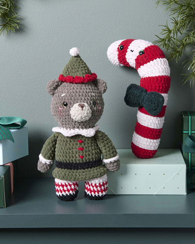 Hekleoppskrift – teddybjørn-nisse og sukkerstang