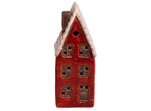 Hus keramikk rød/hvit LED 6,9×5,7×17,3cm