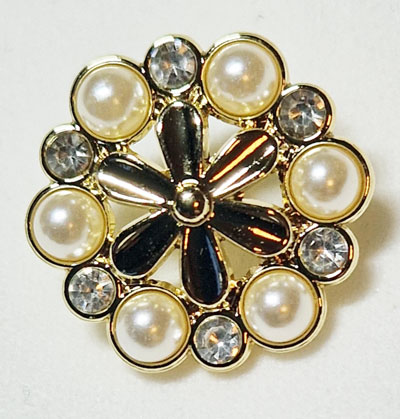 Knapp 15mm – gullblomst med perler og strass