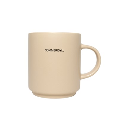 Kopp i keramikk med matt overflate og norsk tekst, fra Lea.