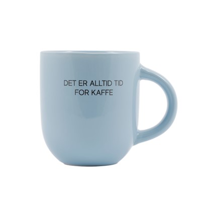 Kopp i keramikk med norsk tekst og motiv fra Lea.