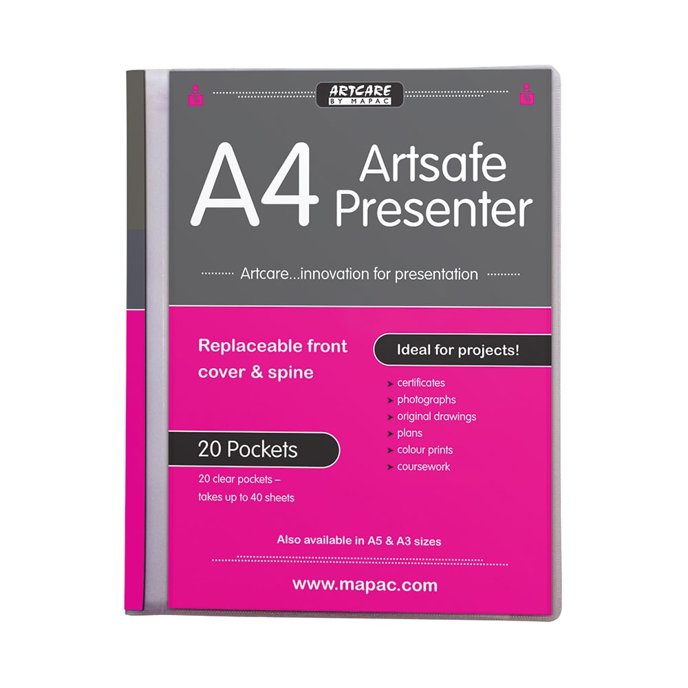 presentere prosjekter, kunstverk eller dokumenter. Med 20 gjennomsiktige polypropylenlommer kan du beskytte og vise frem innholdet på en profesjonell måte. Mappen har en utskiftbar rygg og frontomslag, slik at du enkelt kan tilpasse den etter behov.