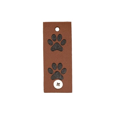 Merke i imitert skinn til å brette over vrangbord/kant. Knapp til å lukke/feste, dette gjør det enkelt å ta av ved vask, flytte eller ha på annet plagg etter behov. Potespor.»