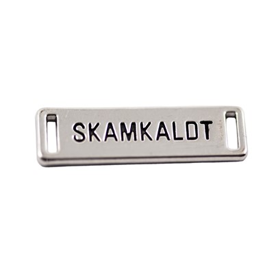 «Metallmerke i rustfri sinklegering, nikkelfrie. Skamkaldt.»