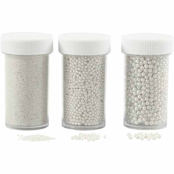 Sortiment av mini glasskuler i tre størrelser i flott blank kvalitet. Brukes som dekorajson på kort, esker, tre m.m. Festes med Multi Glue, hobbylim, powertape og lign. eller blandes med Sticky Base som modelleringsmasse.
