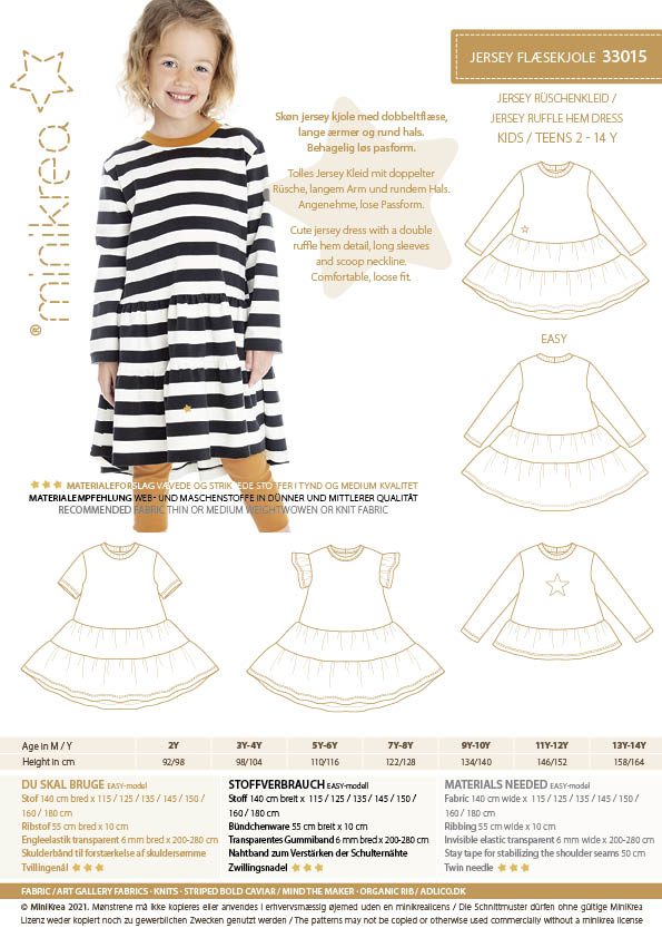 Minikrea papirmønster – Jersey Flæsekjole