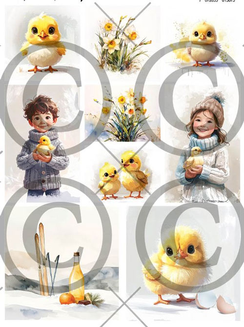 Ensidig klippeark med motivbilder fra Papirdesign.