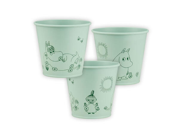 Mummi-blomsterpotte med motivet «I hagen». Potten er laget av galvansiert stål, materialet gjør at at potten tåler mer og ikke ruster.