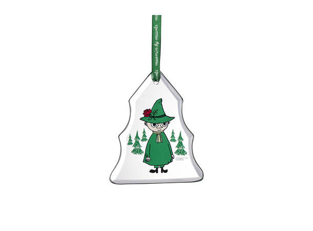 Mummi glass dekor med motiv av Snusmumrikken, laget i glass og er 8cm. Dekorasjonen er stilren og passer utmerket på årets juletre eller et annet sted i hjemmet.