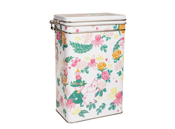 Kaffeboks i tinn med Mummi-motiv og lufttett hengslet lokk. Passer perfekt til en 500 gr pose kaffe. Håndvask og grundig tørking anbefales.