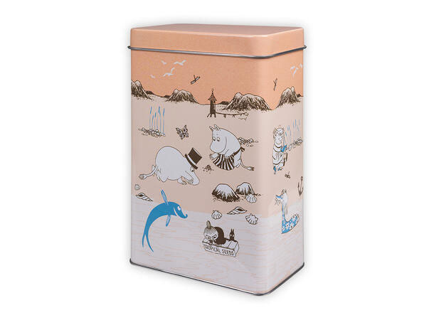 Kaffeboks i tinn med Mummi-motiv og lufttett lokk. Passer perfekt til en 500 gr pose kaffe.