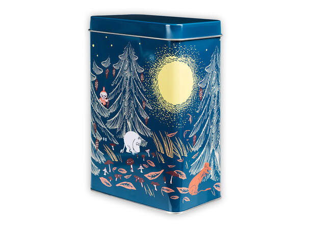 Kaffeboks i tinn med Mummi-motiv og lufttett hengslet lokk. Passer perfekt til en 500 gr pose kaffe. Håndvask og grundig tørking anbefales.
