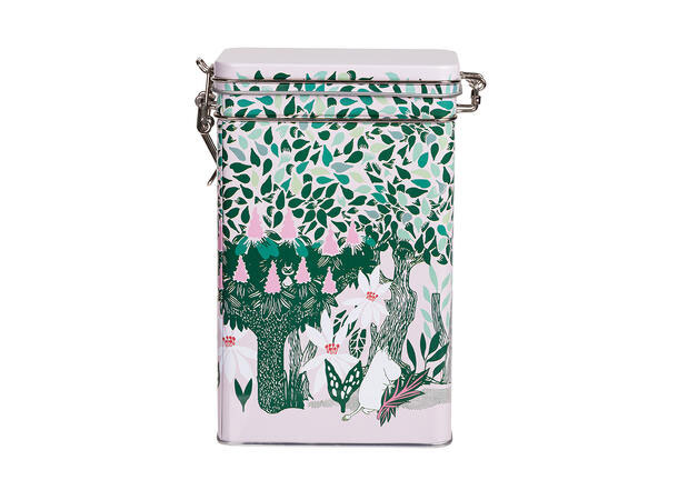 Kaffeboks i tinn med Mummi-motiv og lufttett hengslet lokk. Passer perfekt til en 500 gr pose kaffe. Håndvask og grundig tørking anbefales.