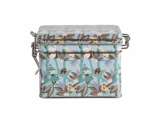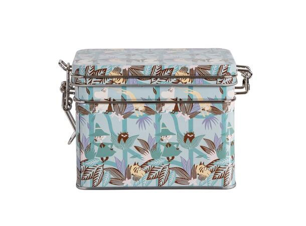 Teboks i tinn med Mummi-motiv og lufttett hengslet lokk. Passer perfekt til teposer eller fersk te. Håndvask og grundig tørking anbefales.