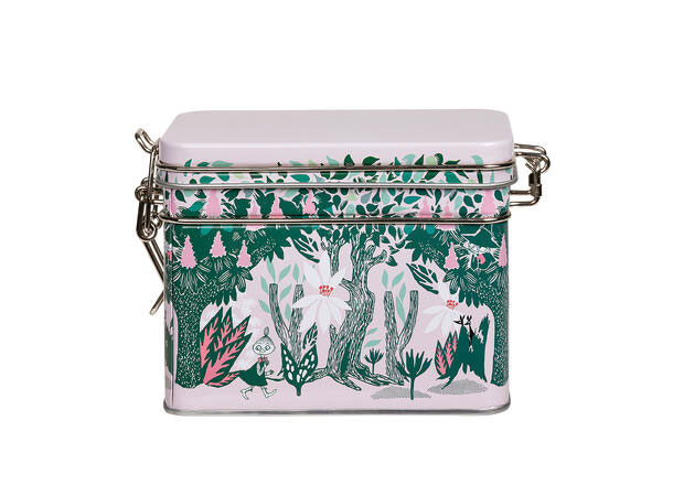 Teboks i tinn med Mummi-motiv og lufttett hengslet lokk. Passer perfekt til teposer eller fersk te. Håndvask og grundig tørking anbefales.