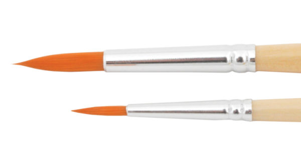 Rund pensel med gylden, syntetisk bust. Kort, klarlakkert skaft. Allroundpensel til hobbymaling og vannfarger, men kan også brukes til olje og akryl.