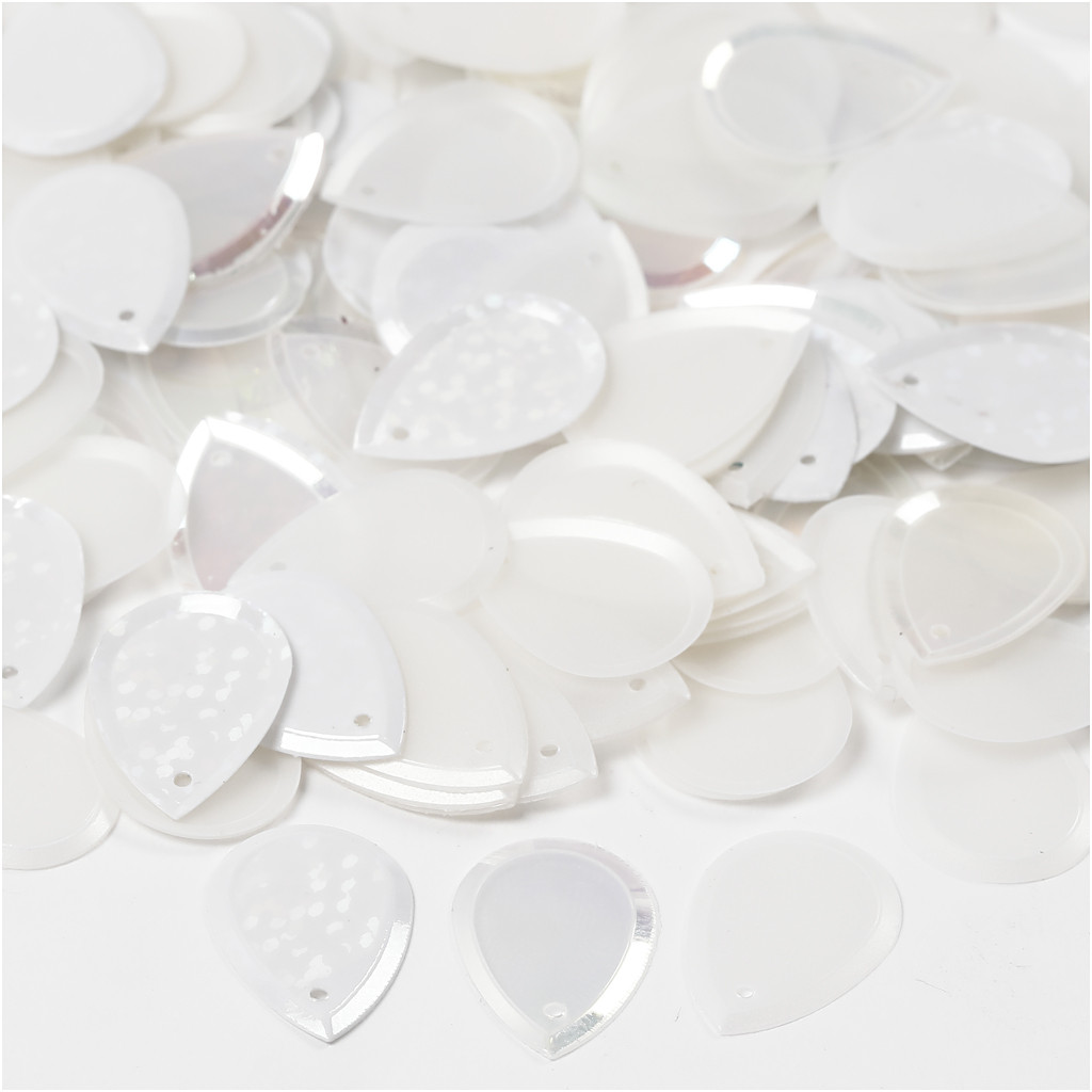 Paljetter dråpe, 14x19mm, 50g – hvit
