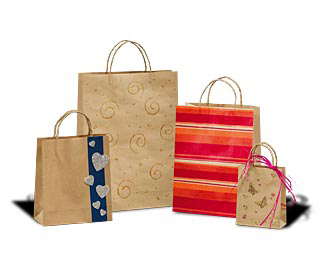 Poser av 110g kraftpapir med sterkt håndtak av tvunnet papir.