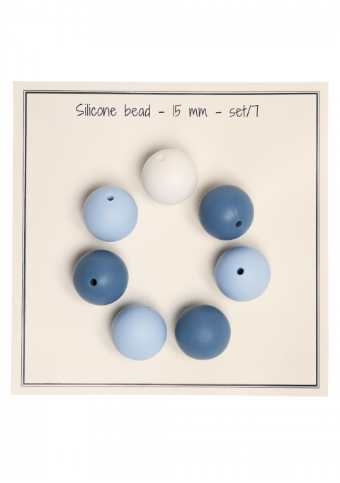 Silicone beads 15mm – blåmix 7stk