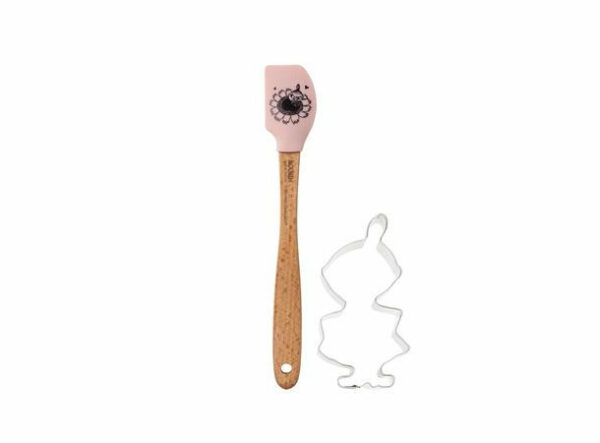 Morsom gaveide – Slikkepott og pepperkakeform sammen. Slikkepotten er i silikon med bilde av Lille My og på begge sider. Pepperkakeformen har en hvit silikonkant på den ene siden, så den er myk og behaglig for små hender å jobbe med.