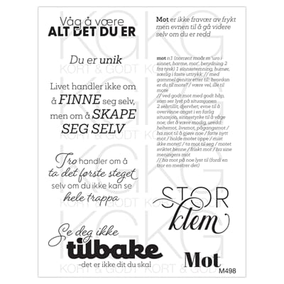 Clearstamps klar til bruk, ferdig oppklippet trenger kun akrylklosse som håndtak. Klem, unik, våg, finne, skape, tilbake, mot, våg, unik, definisjon, stor, livet, frykt, redd
