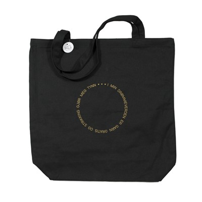 Veske/nett i canvas til å ha garn, pinner, oppskrift eller liknende oppi. I min drømmeverden er garn gratis og strikking gjør meg tynn.