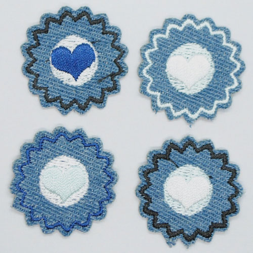 Strykemerke – denim blomster 4stk