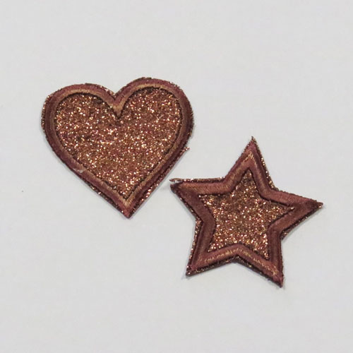 Strykemerke – hjerte/stjerne glitter brun
